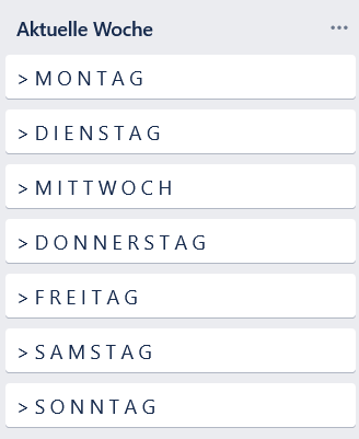 - Anlegen der Liste „aktuelle Woche“ mit Kategorien Montag, Dienstag, usw.